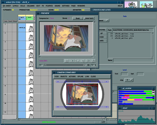 gramm Xsheet werden Kamerapfade eingestellt und Hintergründe eingebaut.
